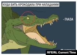Помните, что самое ранимое (в прямом и переносном значении слова) у крокодила – глаза. Именно по ним стоит бить, чтобы отразить атаку; и именно в глаза стоит смотреть и не отводить взгляда, чтобы не злить крокодила.
